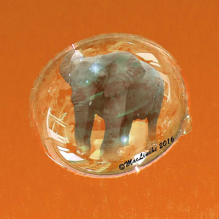 Under en resa i Sydafrika 2014 , närmre bestämt i Bongani i östra delen av landet, mötte den öppna jeepen jag åkte i en hel flock elefanter. De var inte ett dugg roade av vår närvaro utan kom mot oss, viftande med öronen och trumpetande. Jag gömde mig bakom kameran. Här är några av dem, placerade i en hopskrynklad papperskasse från IKEA.