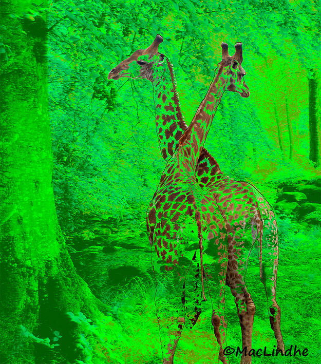 Giraffer fotograferade i Sydafrika placerade i ravinen vid Margretetorp i nordvästra Skåne.