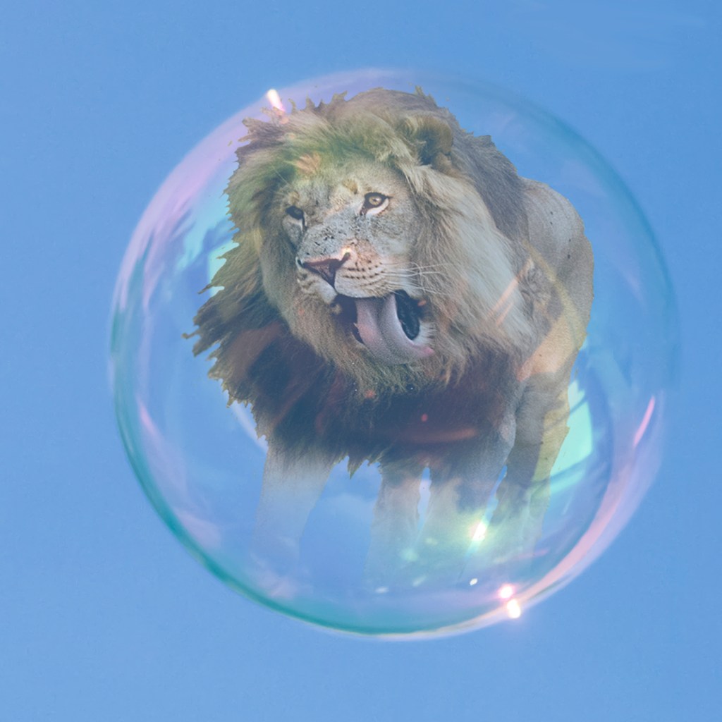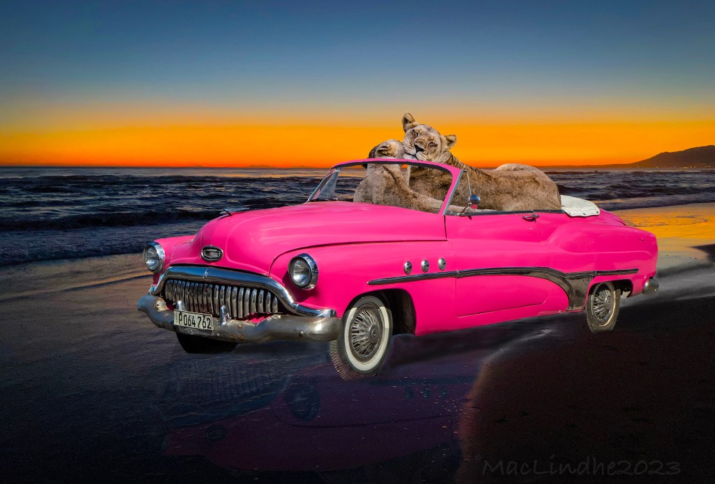 En stallkatt av det mäktigare slaget, ett lejon från savannen i KZN i Sydafrika, som hamnat i en ladugårdsport i skånska Hallaröd.