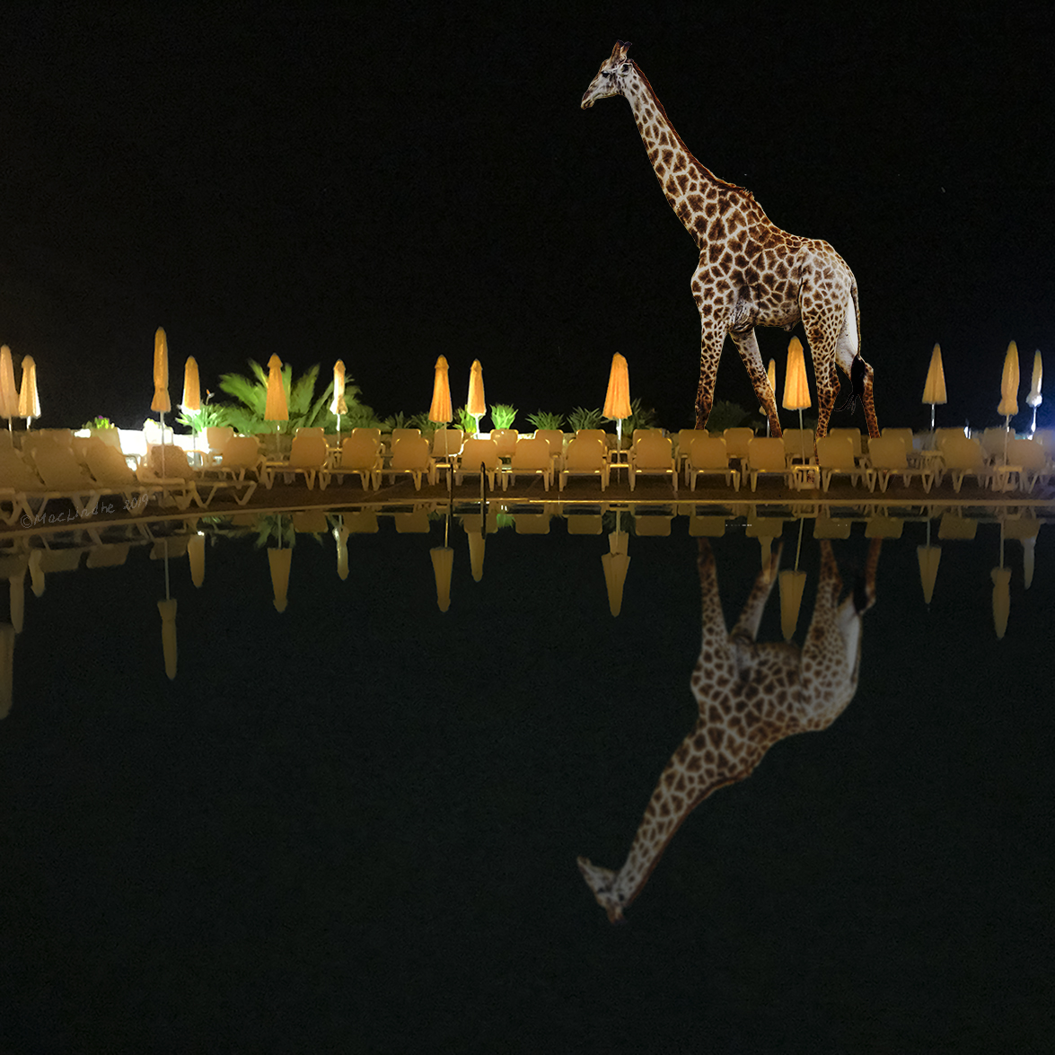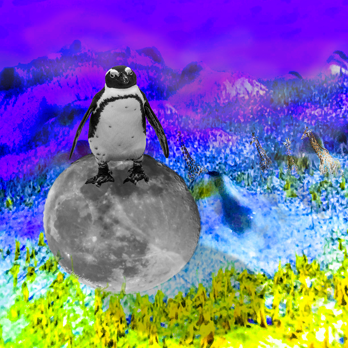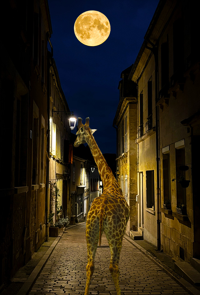 Giraffen är fotograferad i Sydafrika och fullmånen i Höllviken.