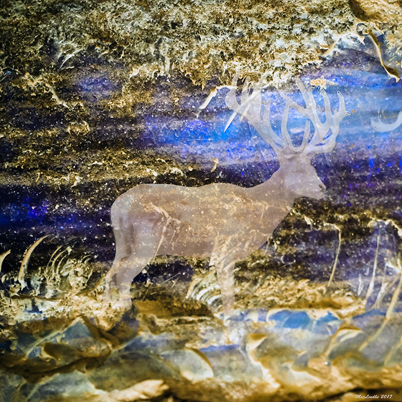 Bakgrunden är en cementbunker (en i P-A Hanssons Skånelinje från andra världskriget) på stranden i Kämpinge, Skåne. Den afrikanska buffeln är fotograferad i KwaZuluNatal i Sydafrika och har fått flyta samman med cementens mossor och kalkavlagringar.