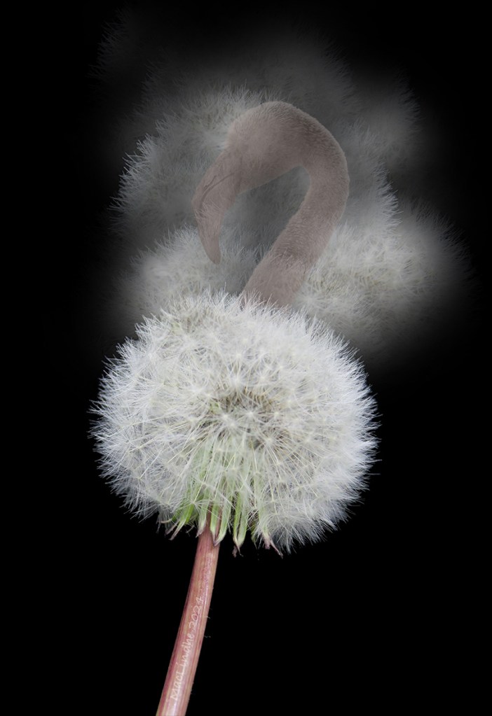 En maskros från trädgården, fotograferad i min ljusbox. Flamingon fotograferade jag i Spanien.
