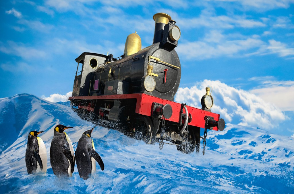 Tåget stod parkerat i Aguilas i Spanien, bergen är Sierra Nevada i samma land och pingvinerna har jag fotograferat i Loro Parque på Teneriffa.