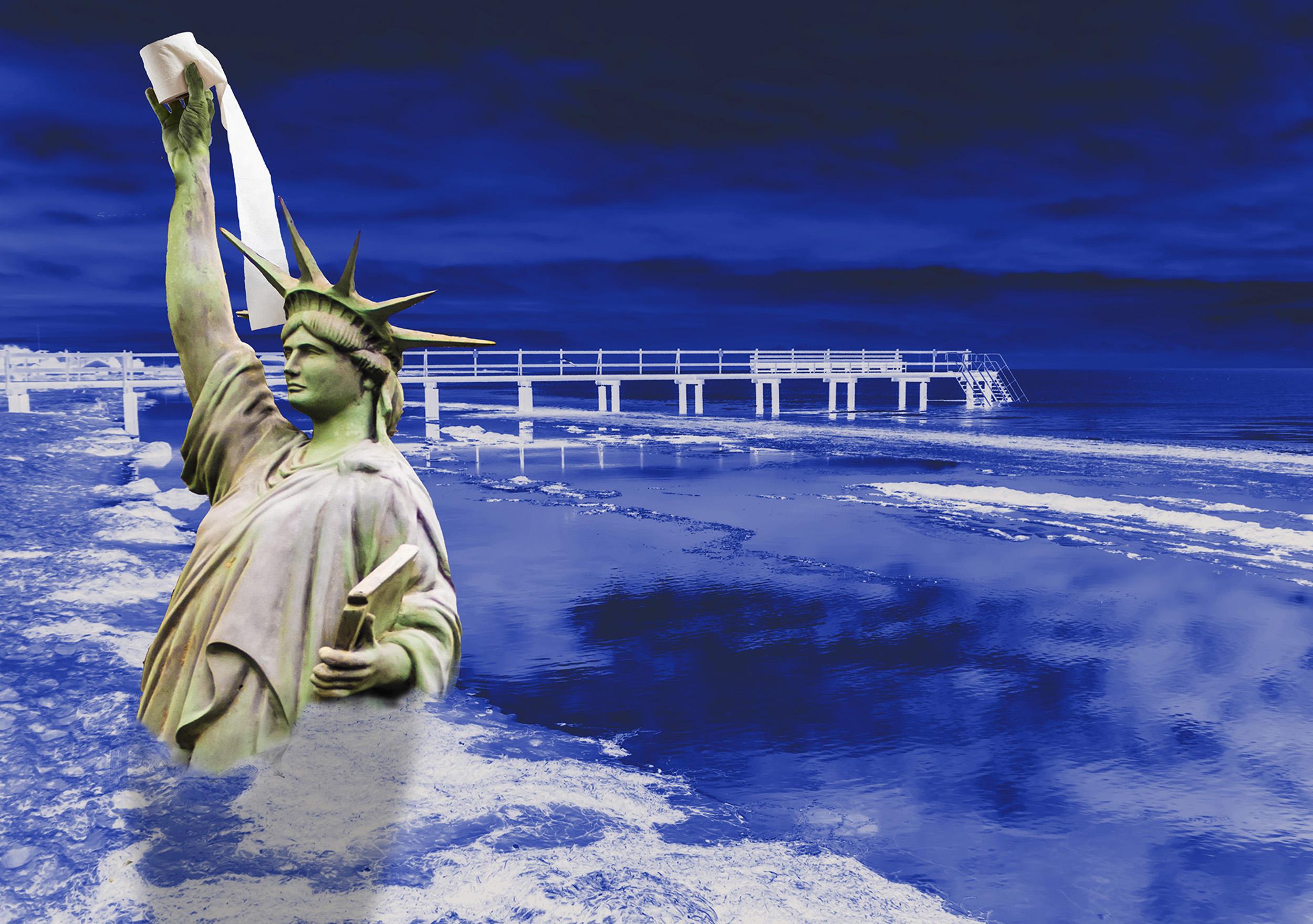 Lite dystopiskt kanske? Byggnaden är Malmö Live, havet och stenarna är fotograferade på Teneriffa, fiskarna, sköldpaddan och pingvinen på Melbourne Aquvarium, Loro Parque Teneriffa och Blå Planeten i Köpenhamn.