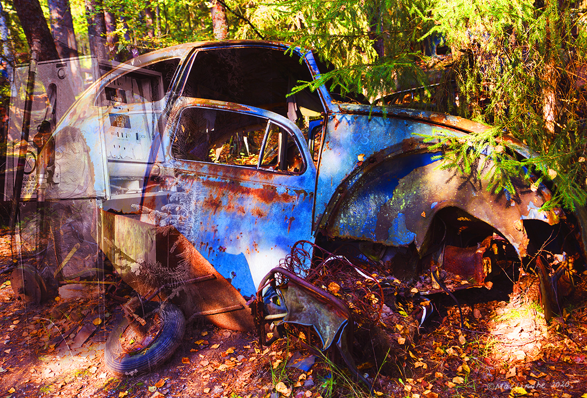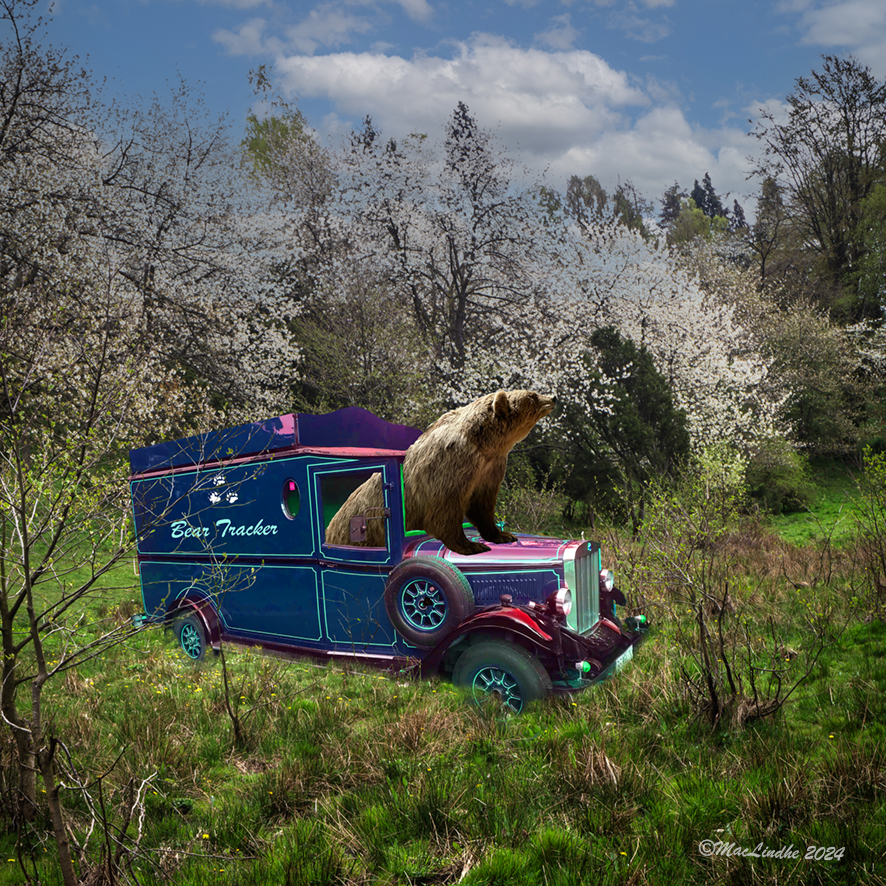 Björnen vaktade bagagebandet på Kirkenes flygplats i Norge, bilen stod parkerad på en gata i Kämpinge (men har blivit omlackerad av mig i Photoshop) och så har den landat i Körsbärsdalen utanför Veberöd i Skåne.