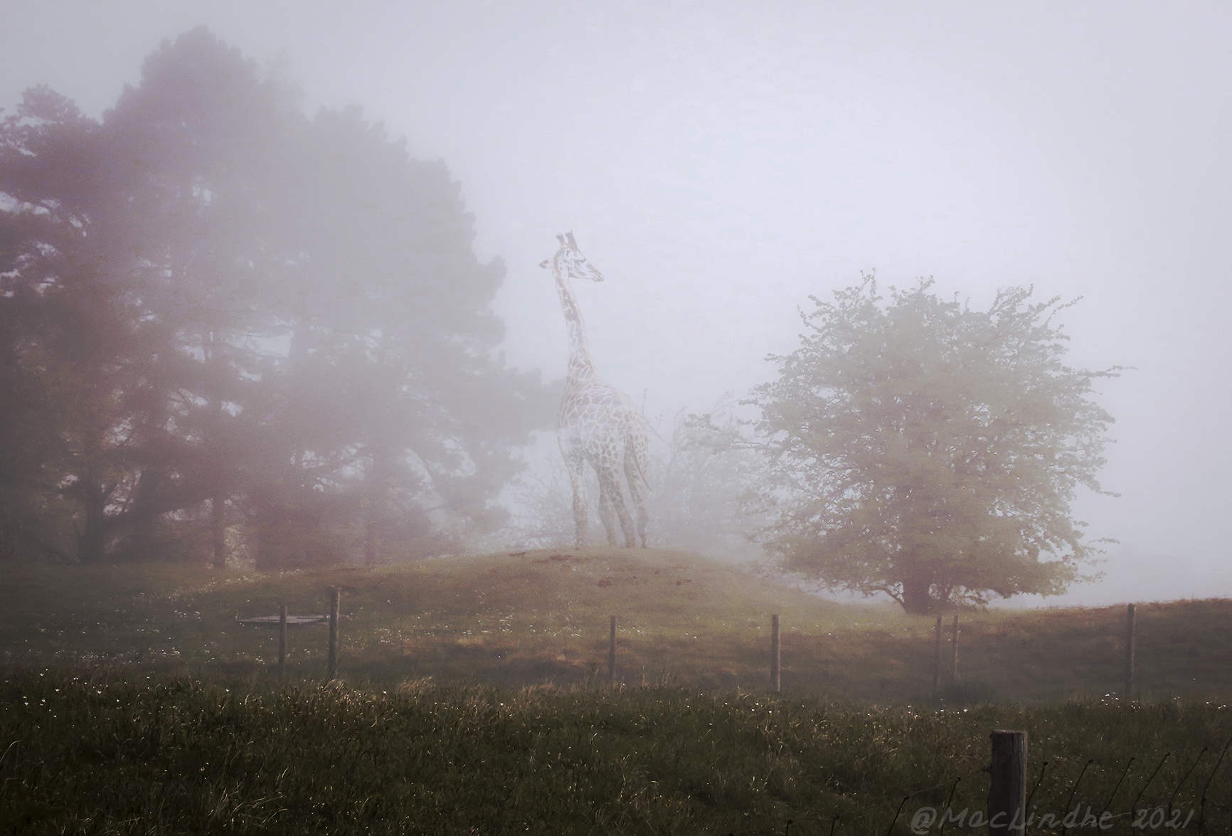 Giraffen är fotograferad i Sydafrika och fullmånen i Höllviken.