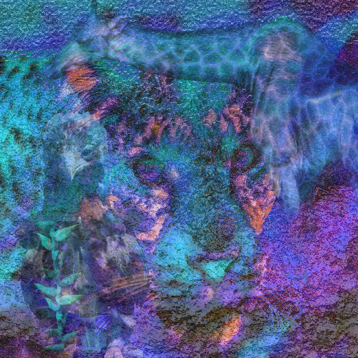 Bakgrunden är en cementbunker (en i P-A Hanssons Skånelinje från andra världskriget) på stranden i Kämpinge, Skåne. Den afrikanska buffeln är fotograferad i KwaZuluNatal i Sydafrika och har fått flyta samman med cementens mossor och kalkavlagringar.