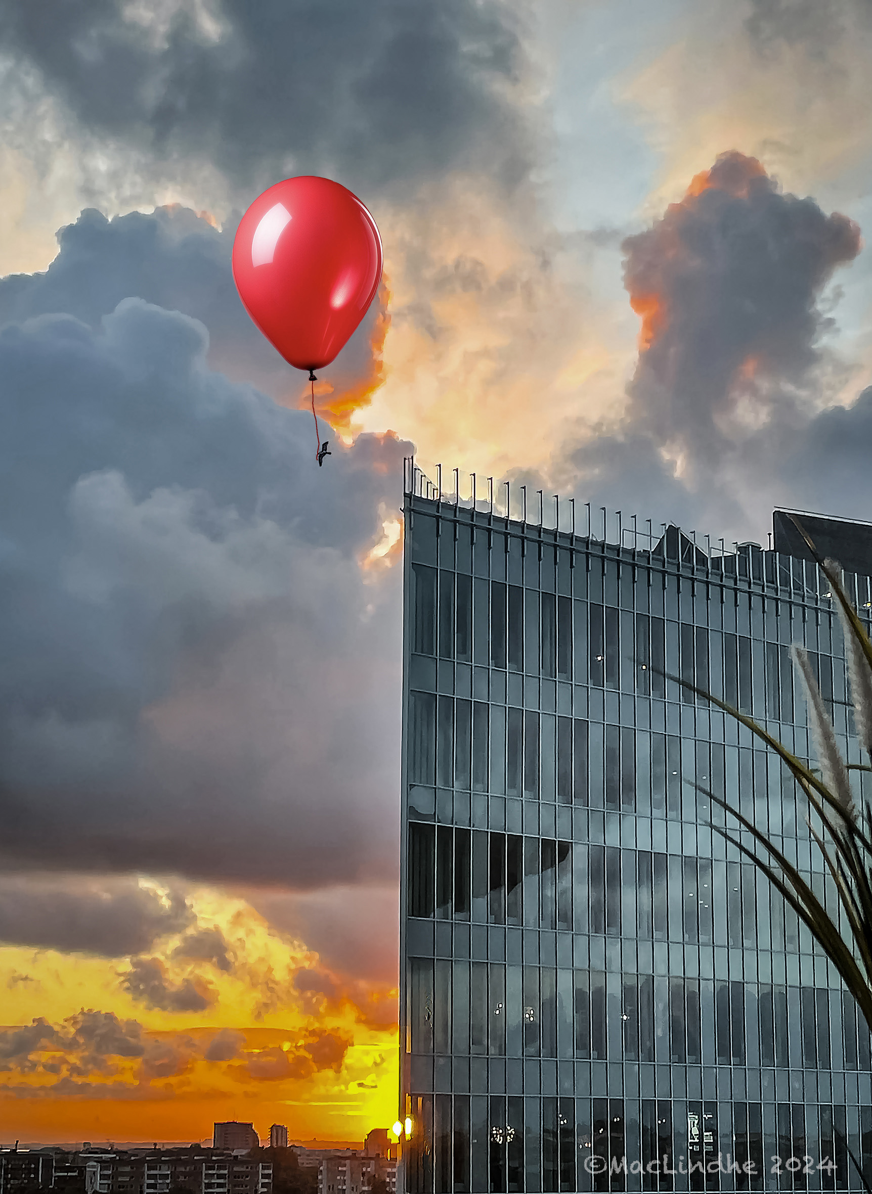 I juni fick jag ett nytt knä på Hyllie Orthocenter, och när jag vaknade på natten och tittade ut genom fönstret såg jag solen gå upp över Malmö bakom teh Edge, som byggnaden till höger heter. Jag lät fiskmåsen som flög förbi hålla i en röd ballong.