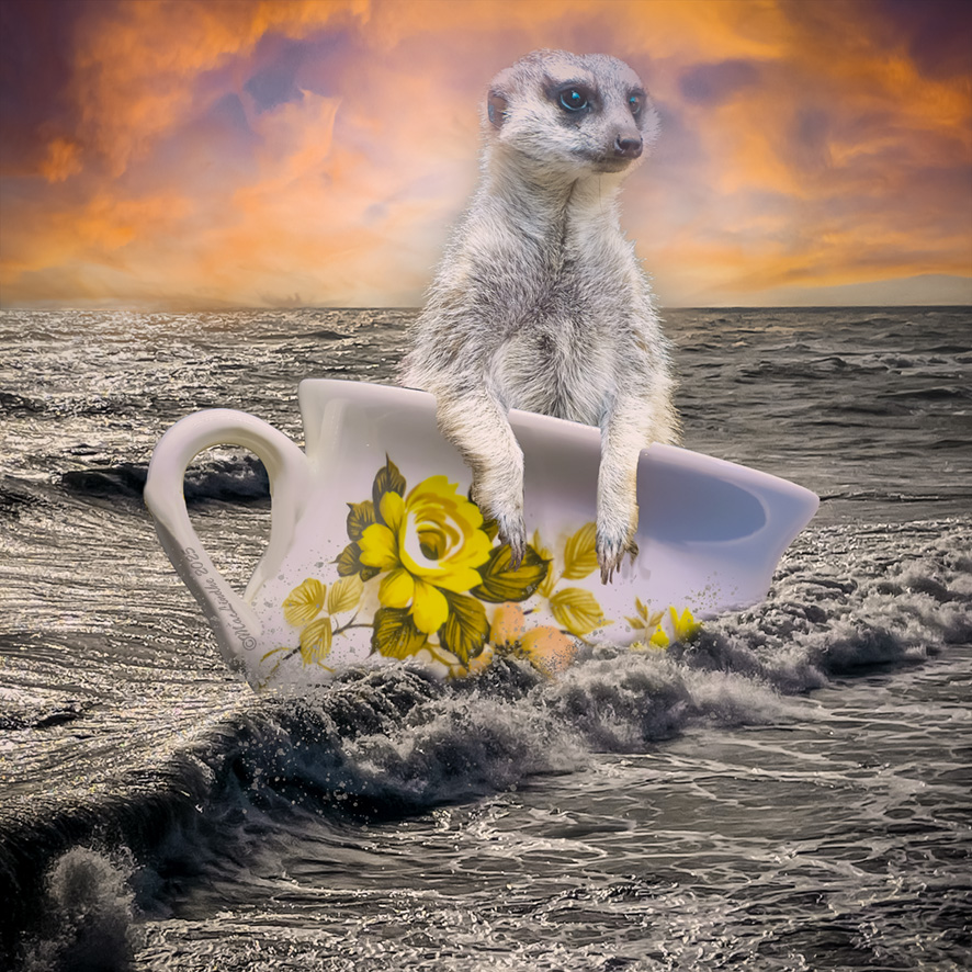 Havet är Medelhavet på den spanska kusten, surikaten fanns på Loro Parque på Teneriffa och pottan köpte jag en auktionssida. Himlen har jag lekt med lite på Photoshop.